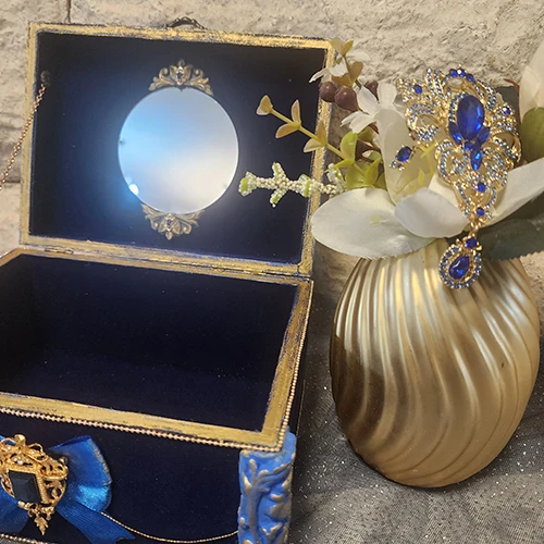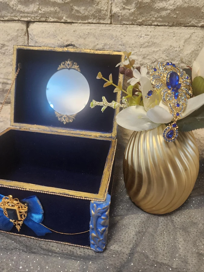 This jewellery box is a princess of your dresser. A wonderful addition to homedecore and to your rings, necklesess and earings.