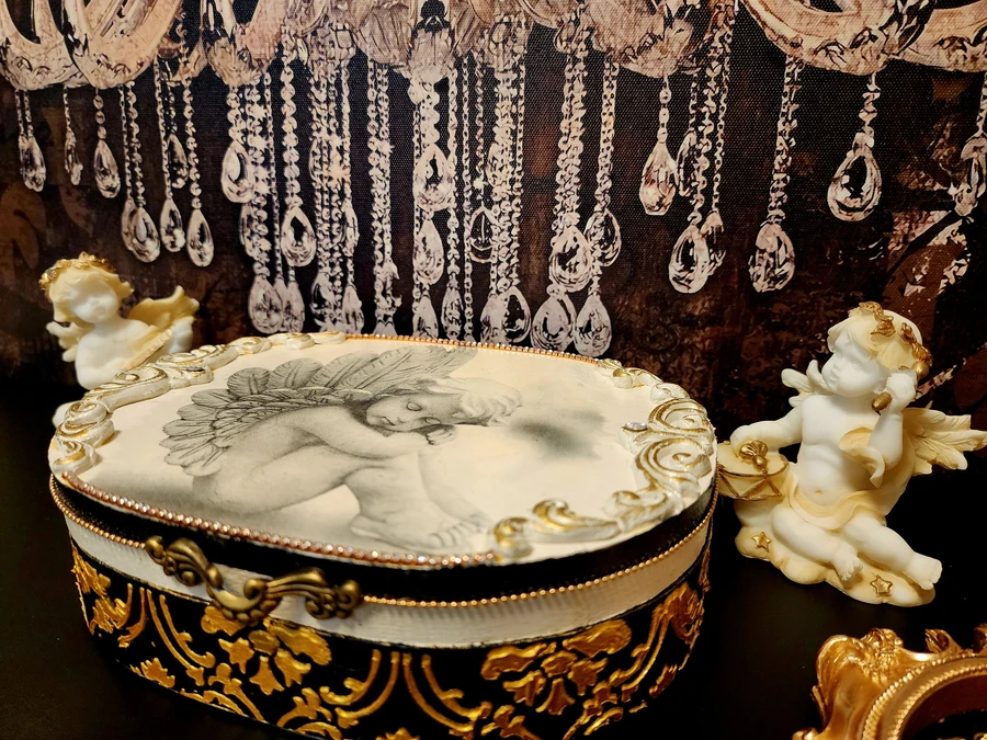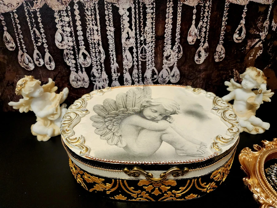 Your jewellery is worth of being guarded with this little and magical angel . Indulge your self with this elegant treasure keeper.