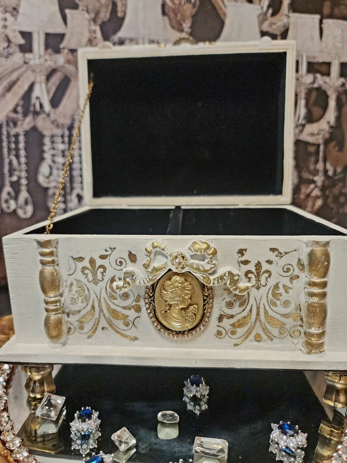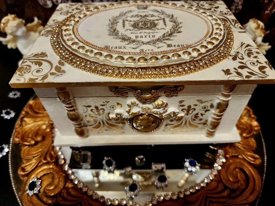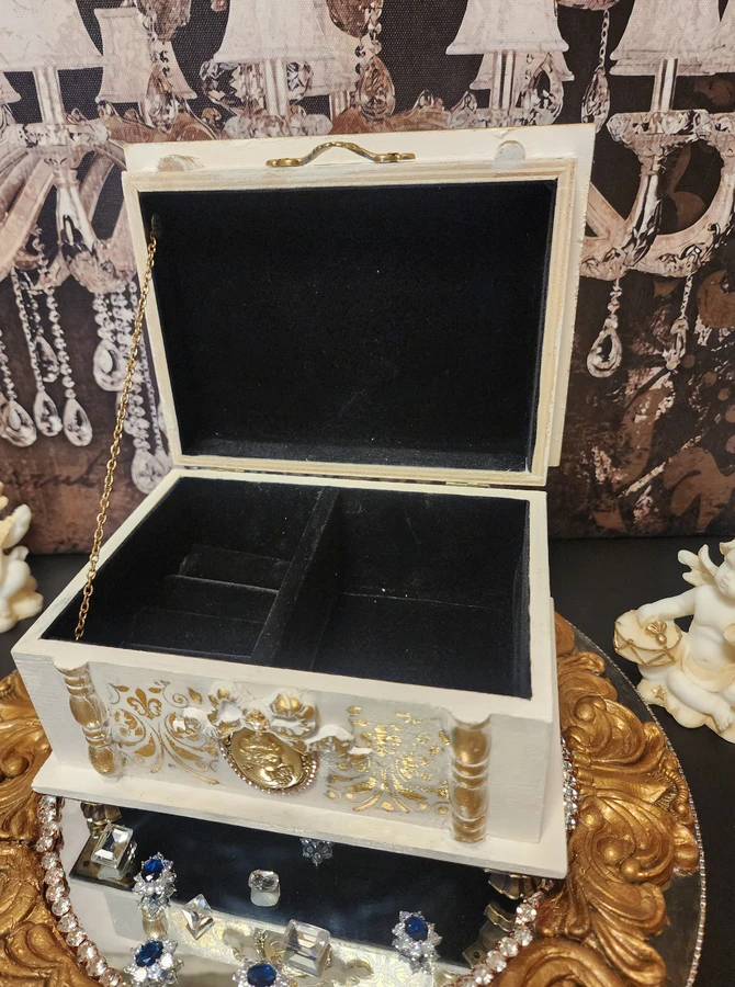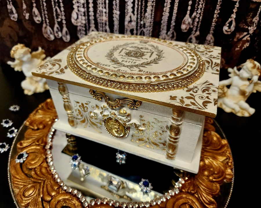 Feel the shine and happiness with this beautiful and elegant box. It was made for you to store your presious stones and jewellery inside it. Inspired by beautyful Paris gardens.