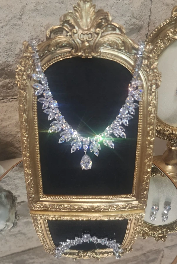 This set represents an elegance and a sophistication . Designed with clean and feminine lines. The set offers a soft , luminous shine that flatters every skin tone. Selected as a part of a private collection and kept in impeccable conditions - never worn. If you'd like to keep this elegant piece of jewelry from harm , it is better to store it in one of my hand made jewelry boxes, which you can purchase here in my store.